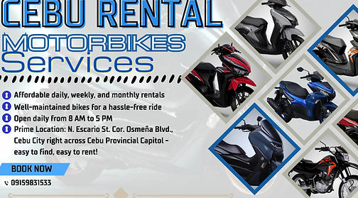 Ang Cebu Motorbike and Car Rentals ay isang mapagkakatiwalaang opsyon para sa mga biyahero at lokal na naghahanap ng flexible at abot-kaya paraan ng paglalakbay sa Cebu, lalo na sa mga lugar na mahirap ma-access ng malalaking sasakyan. Matatagpuan sa 9XF4+86M, 1 Semblante Compound, H. Pepito St, Poblacion Oriental, Consolacion, ang negosyong ito ay nag-aalok ng maayos at well-maintained motorbikes at kotse na angkop para sa turista at negosyo. Mayroon silang 24/7 customer support at madaling kontakin sa +63 936 992 4060 o sa kanilang Facebook page (https://www.facebook.com/CebuMotorbikeRentals), kung saan aktibo silang tumutugon sa mga katanungan at booking. Ang kanilang mabilis, transparent, at customer-oriented na serbisyo ay nagpapahusay sa kabuuang karanasan ng kliyente, na ginagawa silang isa sa mga nangungunang piling-rental sa rehiyon.